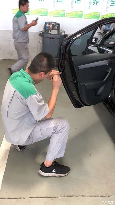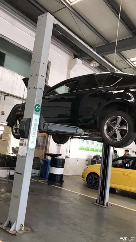 第一次保养的时候是在休息室里的,这次想看看是怎样做保养的,就到车间里转了转,拍了一些照片与大家共同分享。保养是由两个师傅共同完成的,所以做得比较快。