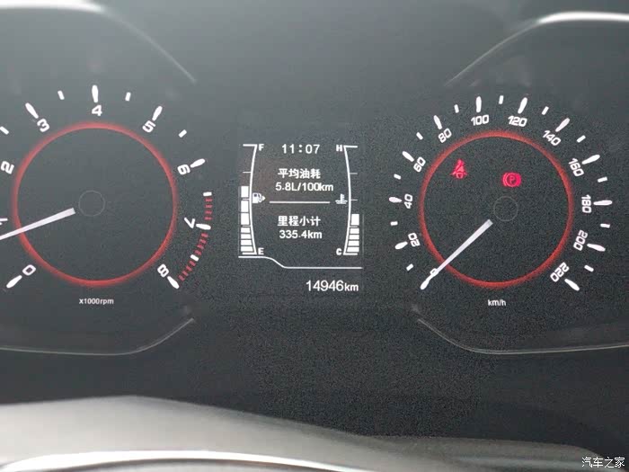油耗表显5.8,满箱油到这个位置跑了335公里,计算过多次的实际油耗的情况确实跟表显相差不大。