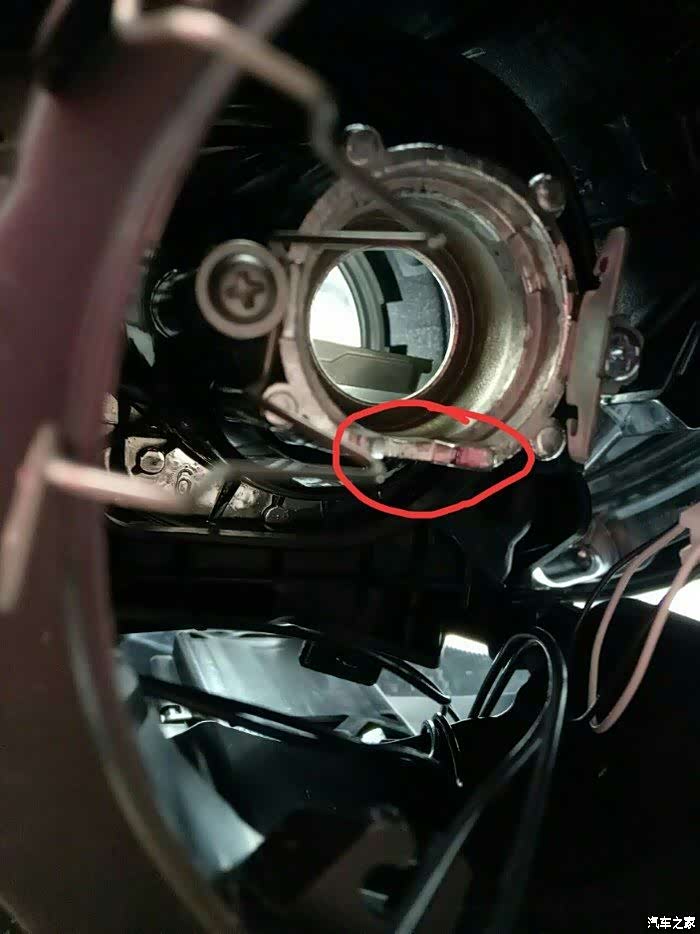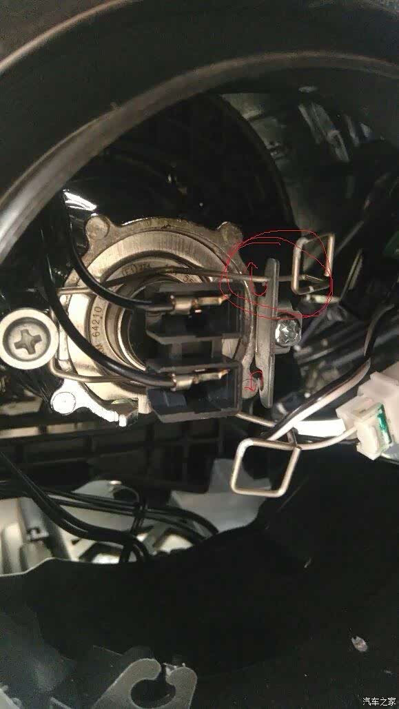 拆掉大灯防尘罩,会看到这里,这个地方拆的时候比较费劲,用时比较大