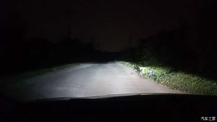 有路灯的路上也能看到灯光了,原来卤素灯开灯效果不大。
