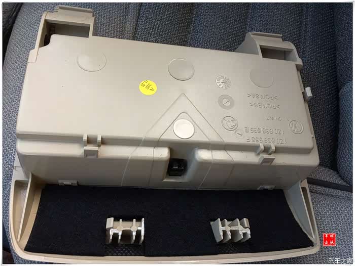 也许是小明老了,也许是经常在太阳下暴晒,所以有些塑料元件在“慢性衰老”。这不,前几天我关了一下车门,眼镜盒便应声而落,磕在了扶手上。看着车顶上新出现的大窟窿,不装的话实在不好看。用胶水粘一下吧?又怕开车途中掉下来,不安全。于是我就从某宝采购了一个据说是原厂的眼镜盒,来解决这个鸡肋。