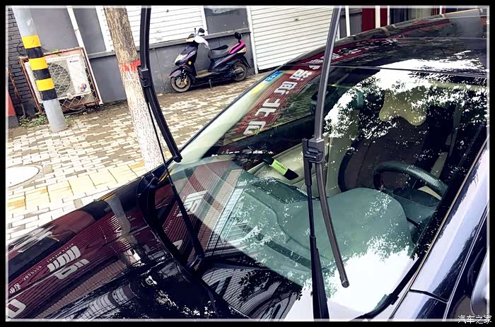 当时没有下雨,喷了玻璃水来试试效果,刮的很干净,能保持视野的清晰,雨刷刮动也没什么噪音,非常的满意。