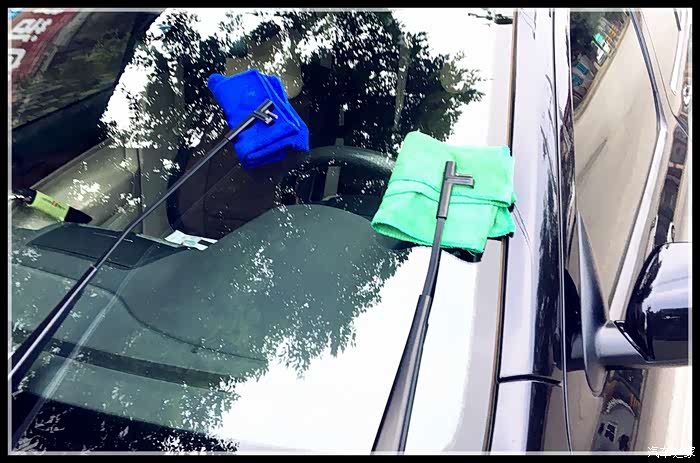 两边雨刷都拆下来之后,把雨刷臂放了回去,垫上了两块毛巾,这样可以防止雨刷臂意外回弹砸到玻璃。