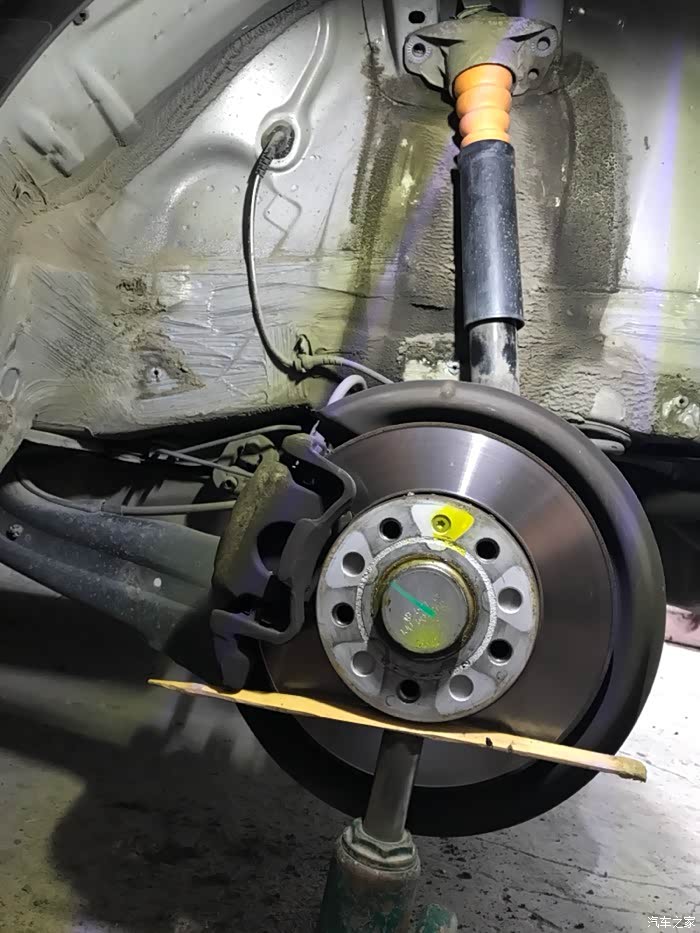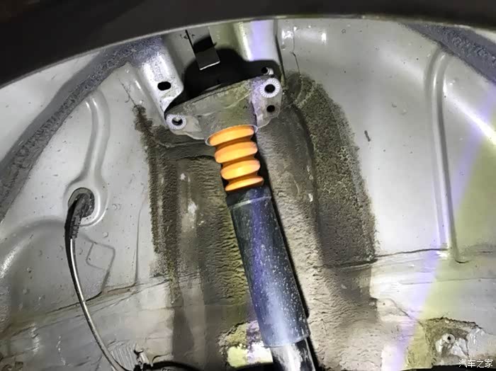 下掉轮胎轮罩就看到减震上面的两颗螺丝,先用记号笔做记号,等下装的时候拧到同一位置,注意拧下来后左右两颗螺丝别搞混了
