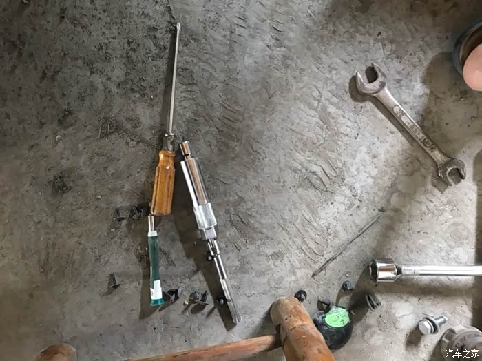 这两颗螺丝是16的,非常用规格,家里厂里都没有16的扳手,只有用拆轮胎用的17号套筒将就一下,其实这两螺丝一点也不紧,我就坐着两手稍用力就拧松了,所以17套筒并不会拧坏这两螺丝,一点伤都没有