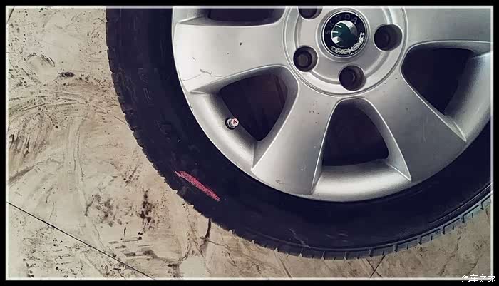 铝合金气嘴是自己带来的,是之前家里迈腾换轮胎时多要了一套,质量还不错,这次正好换上,原车橡胶气嘴也用了7年多了。