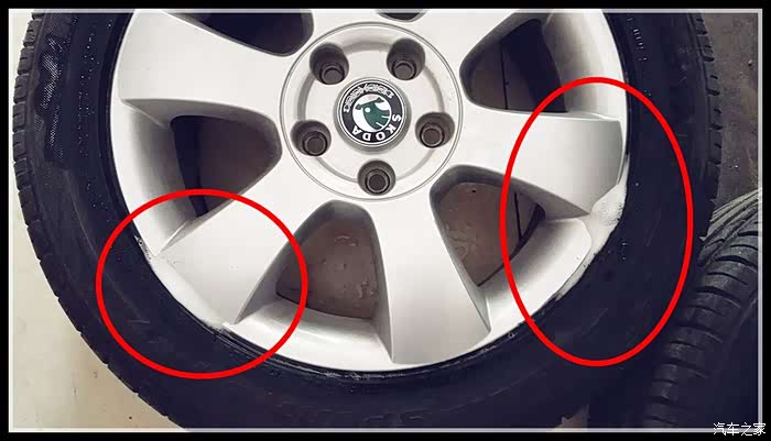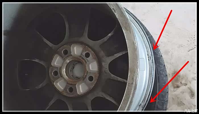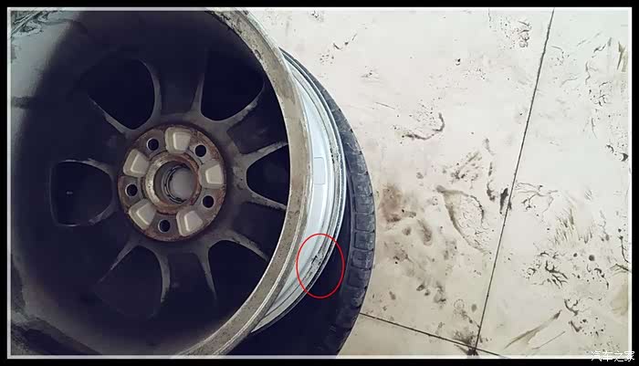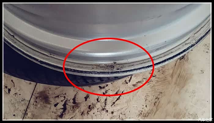 这个是漏气比较快的右后轮,可以看到轮毂确实是有更严重的腐蚀点,摸上去也是凹凸不平的。