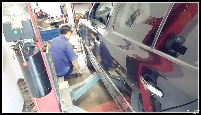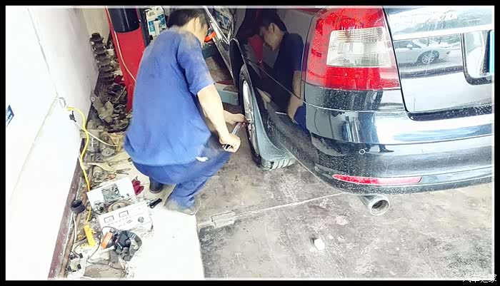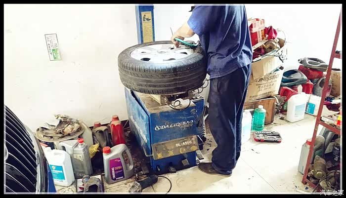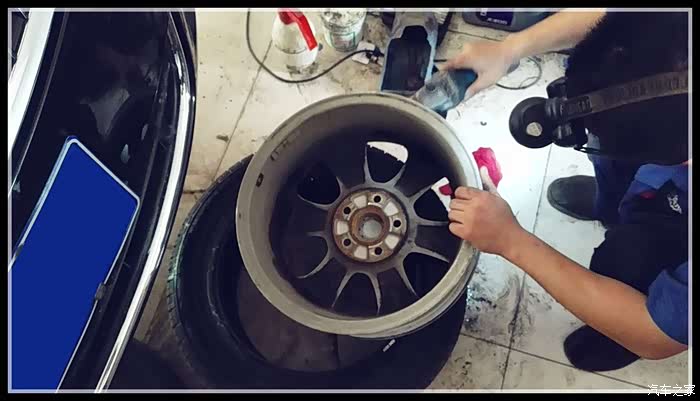 提前约好了时间,到了店里直接上架拆轮胎开工,老板亲自出马。