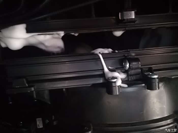 等几分钟车下面就会流出黑色的泡沫水,这就清洗下来的风道和蒸发器的脏东西,这些东西在温暖的条件就会滋生细菌,空调就会有味道,所以有车友说空调异味除了换空滤芯,还需要清洗下风道和蒸发器