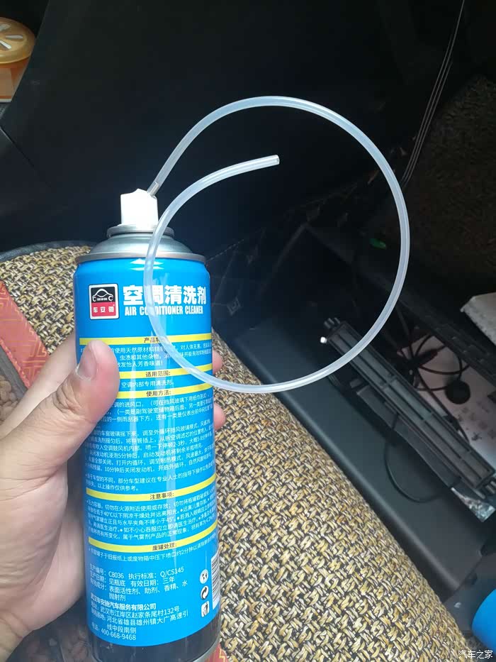 先把清洗剂摇晃2分钟,将软管插到最里面,喷出泡沫,