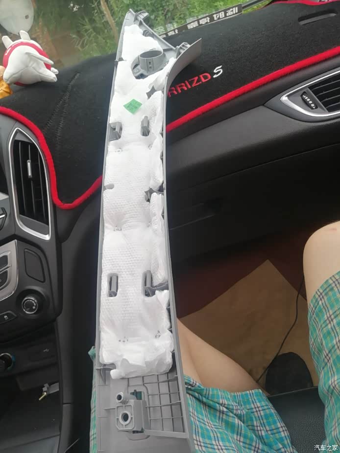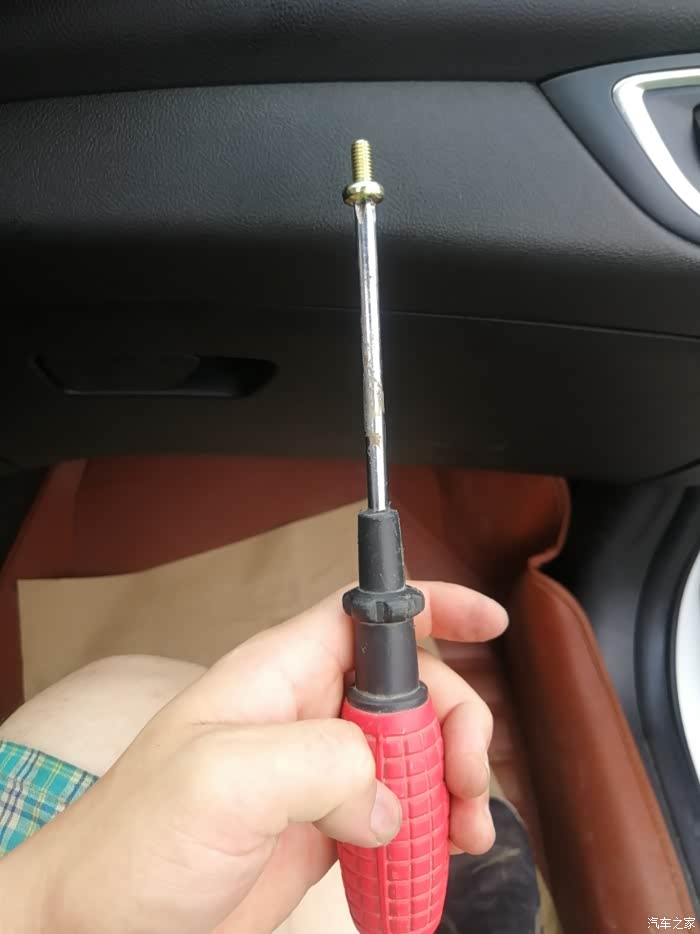 然后把A柱上的装饰板复原,用拳头敲两下,就完美放实了,螺丝拧紧,扣好