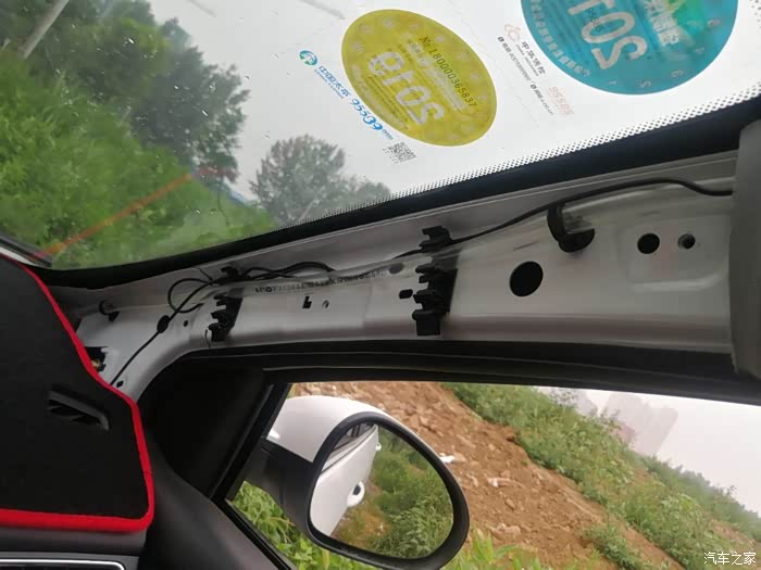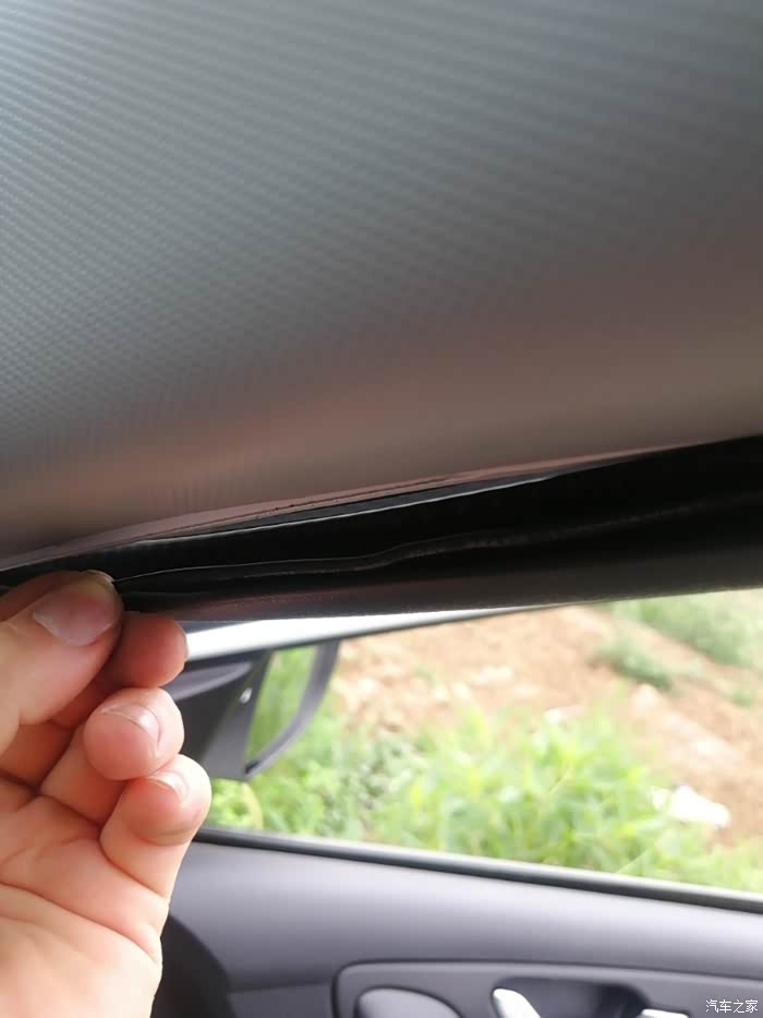 把线用手塞进车顶的夹层里