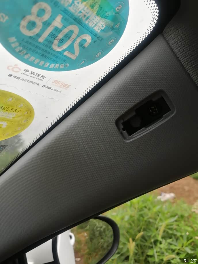先找个位置,本来想把静电贴贴上,后来发现根本不管用,因为17款的大艾,这片黑色点状区域是感应区,根本用不了,所以直接找好位置就把自带3M胶的记录仪拖粘了上去,还不错,粘的很紧