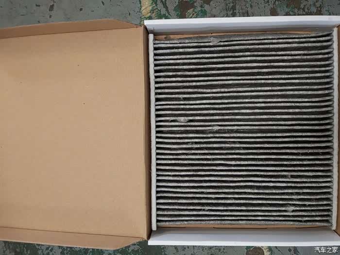 没过一会,被告知那边空调保养开始了。急忙赶到维修区,发现师傅已经把空调滤芯拆下来了,只能拍个包装了。。