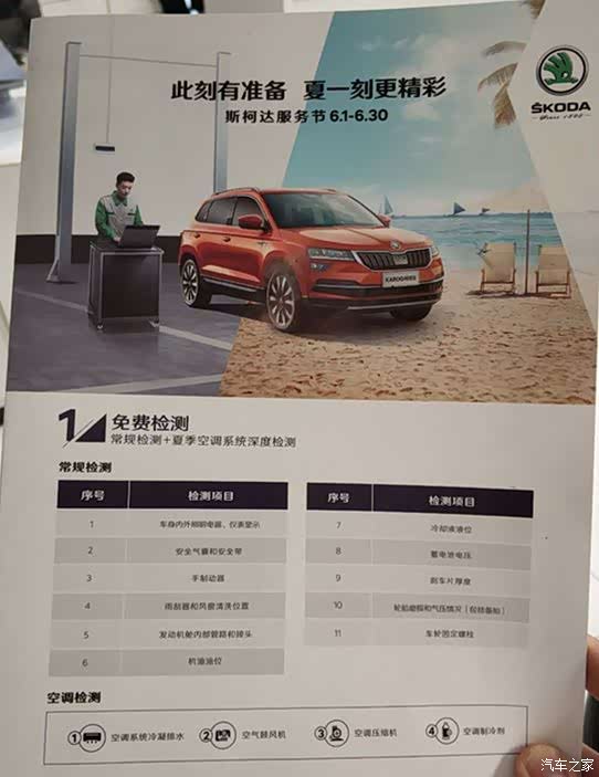 小明入手已经快3年了,空调系统一直很给力,从来没出现过什么问题,不过炎热的夏天已经开始,正好6月份是斯柯达夏季服务节,趁着活动给小明的空调系统来一次保养吧。