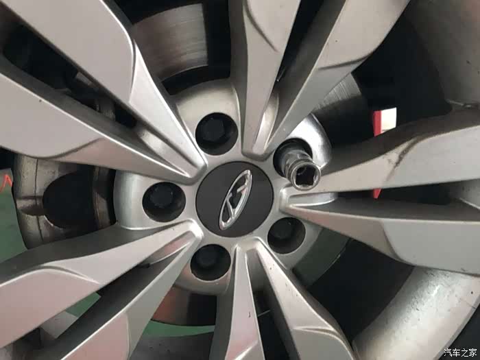 开始拆卸轮胎,装了一颗防盗螺丝。
