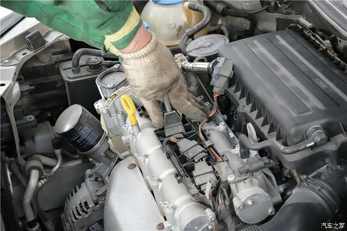 拆完点火线圈就是拆火花塞了,这里要用到套筒,这里注意套筒方向要和火花塞一致,这样不会伤到螺纹。然后就是拧火花塞,如果遇到拧不动的情况,不能使用蛮力,不然会造成火花塞断裂就麻烦了。