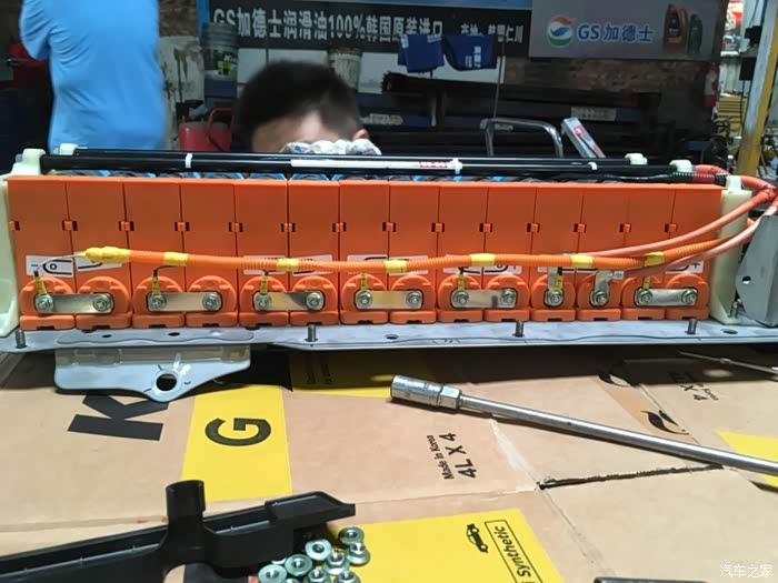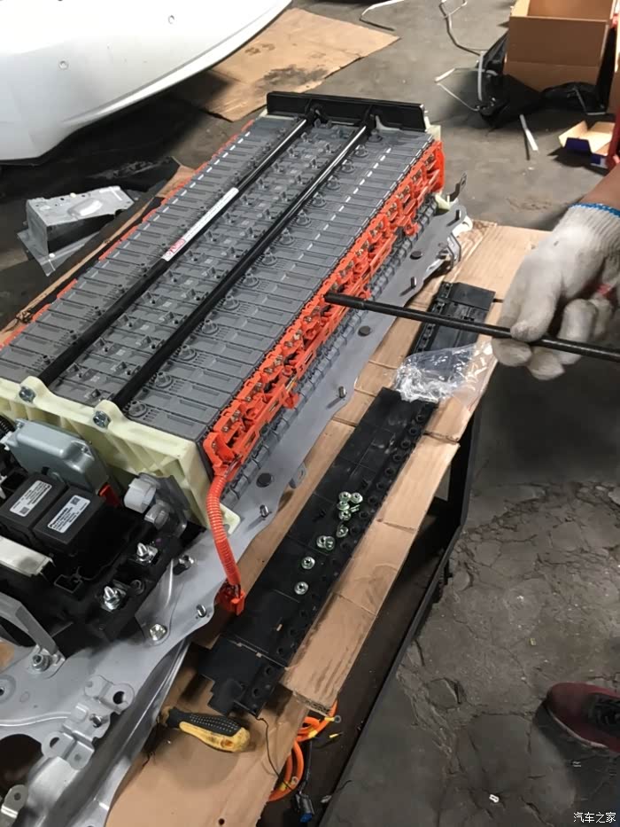 拆除电池组上保护盖及底座的各个固定螺丝,以及鼓风机的相关插头拔掉,然后直接把电池连同鼓风机一起抱出来。