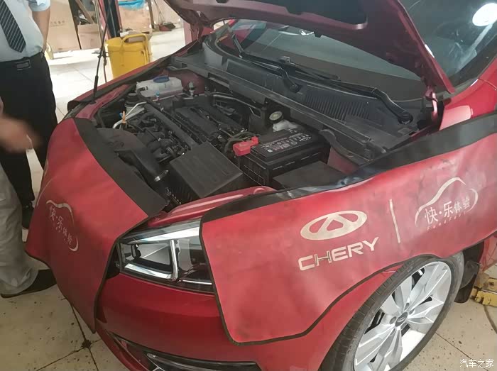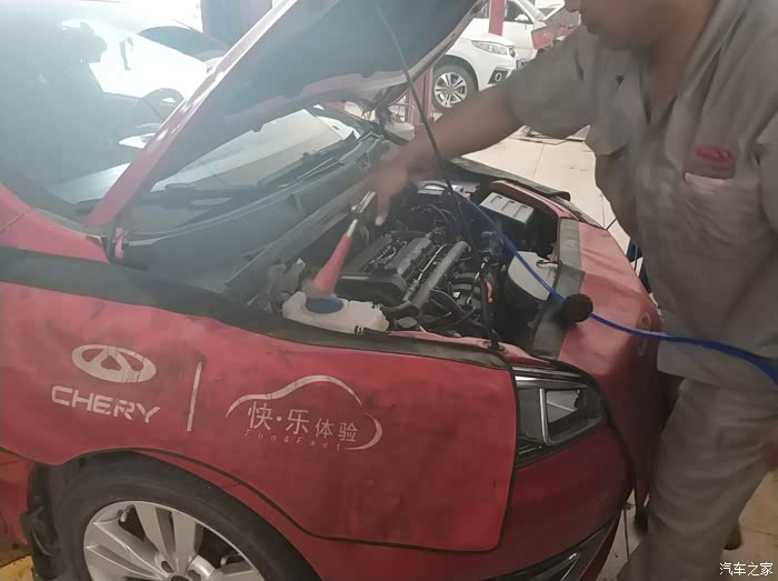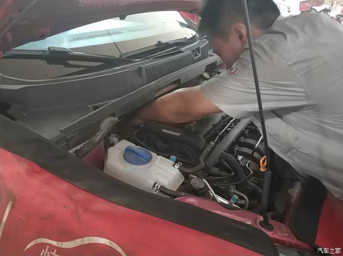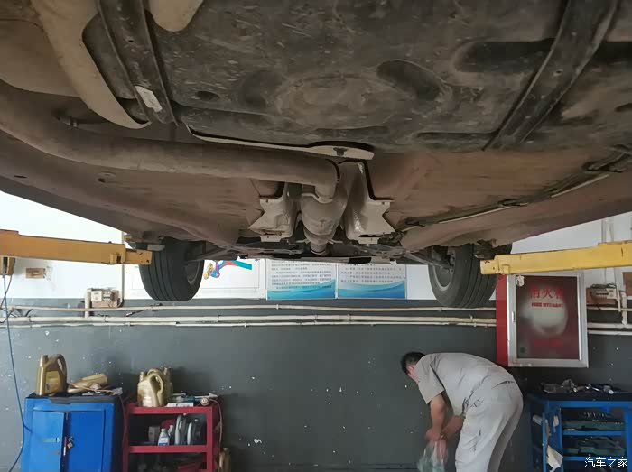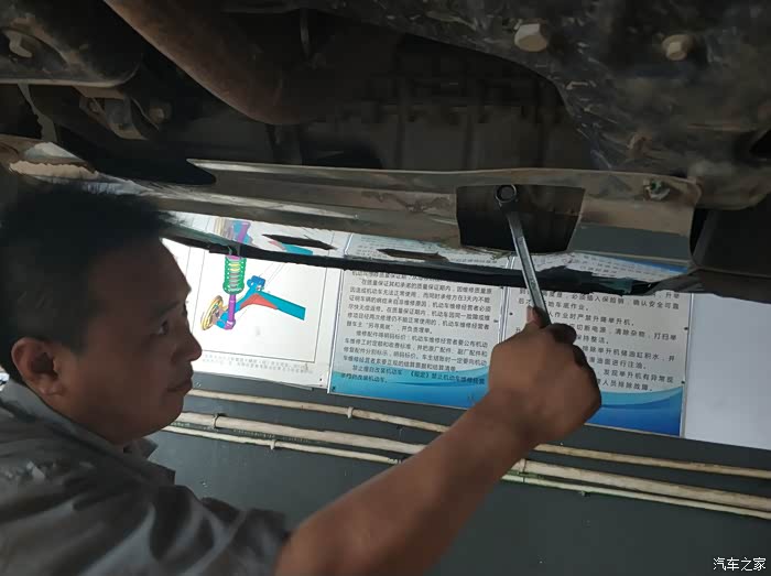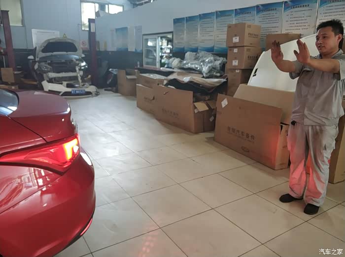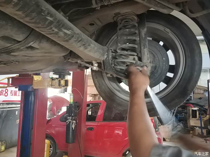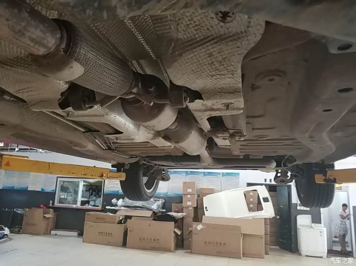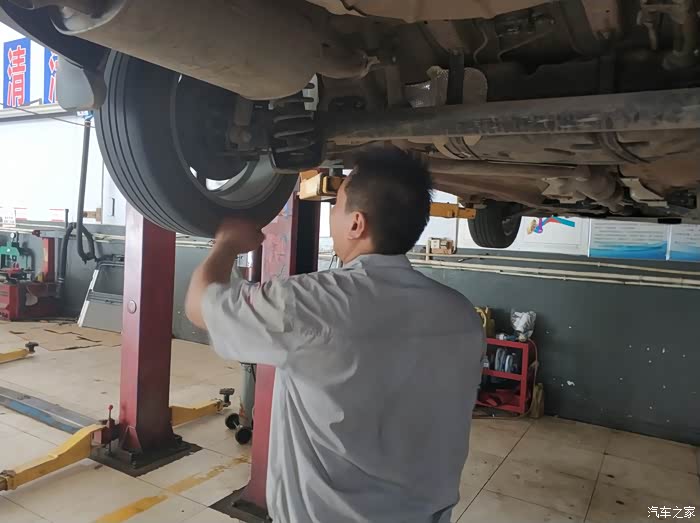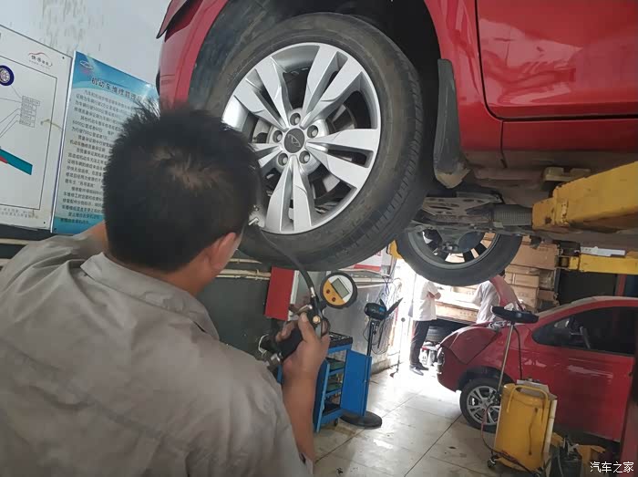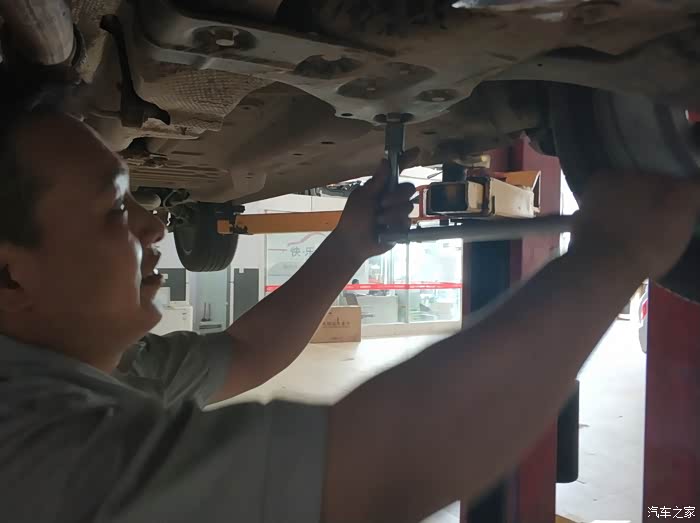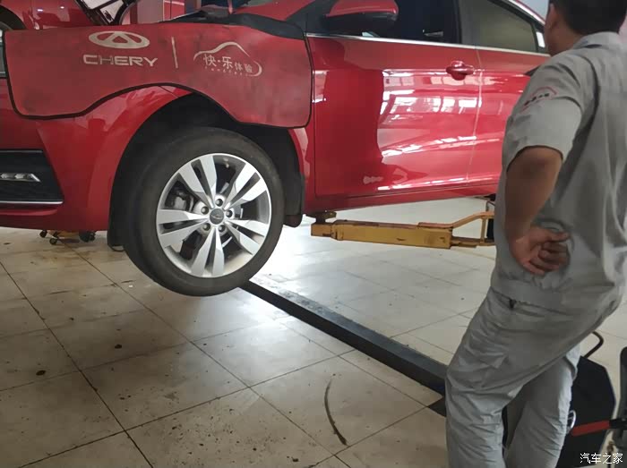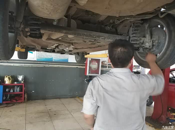 同事的车被升起来了,售后人员这是在观察啥呢