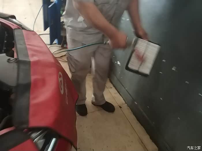 师傅打开空滤,说不咋脏,吹一下行了,太赞了!!!这真是为客户着想。