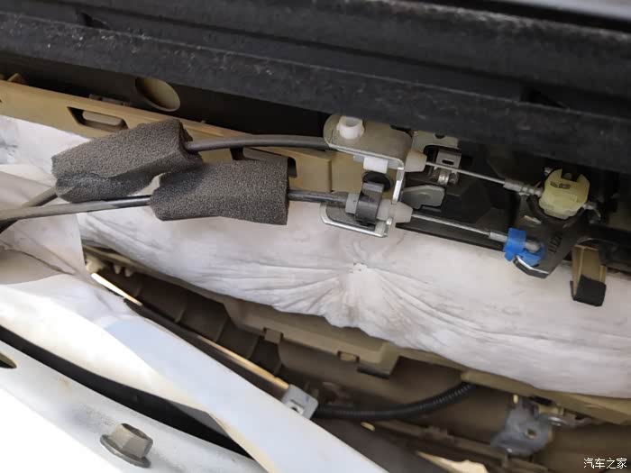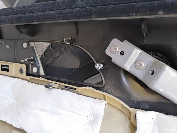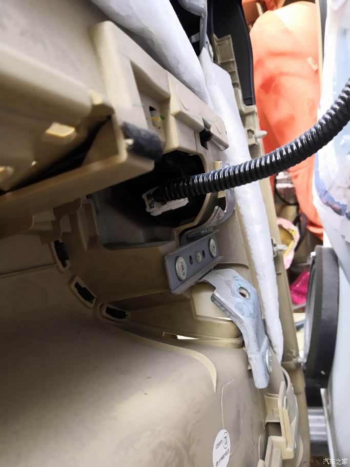 H.将门板和门稍微拉开点距离,会看见有根电线,沿着电线看到插头,将玻璃升起,拔出这个插头(插头处有个卡销,用指教按住卡销拔出插头。门板与车体分开。