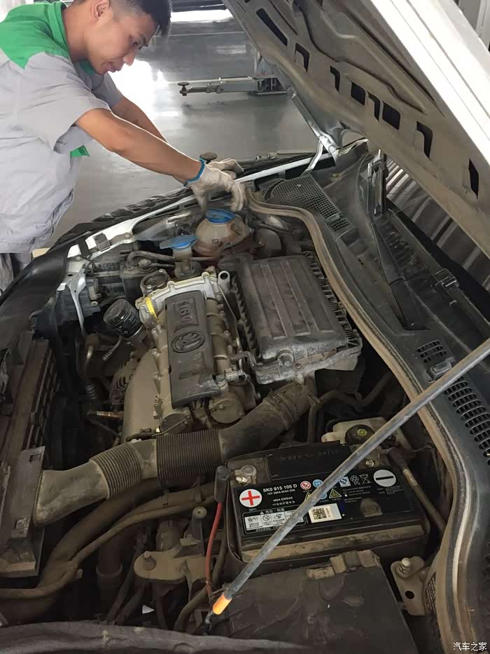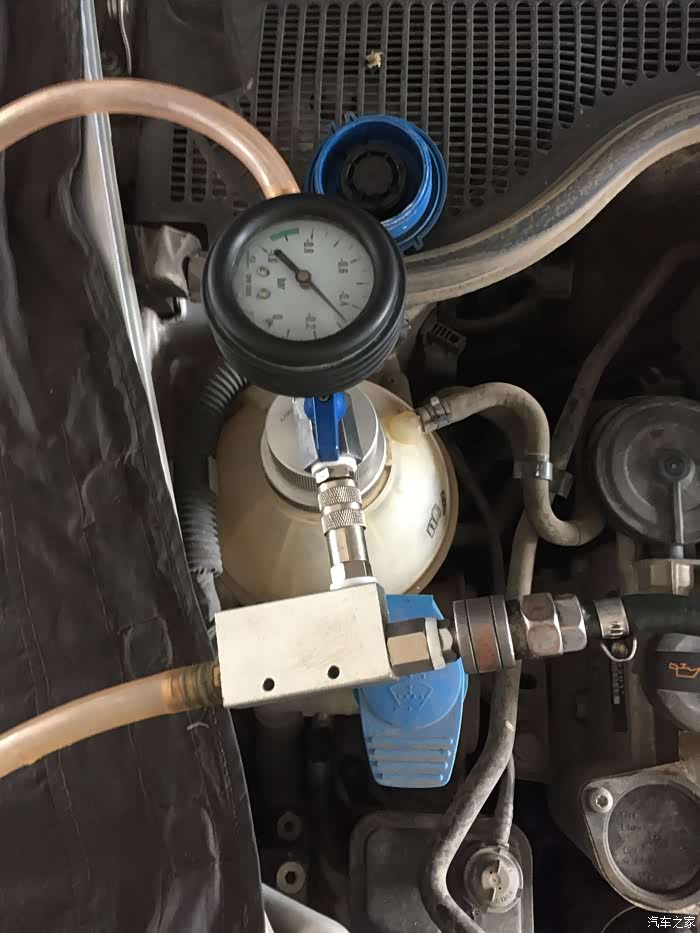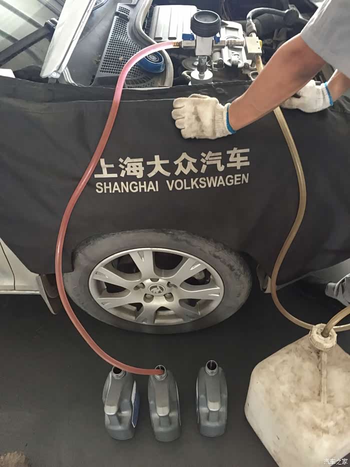 我问维修小哥这是干嘛呢,告诉我这是用气吹残留在管子里的残留防冻液,可以放的更彻底些。