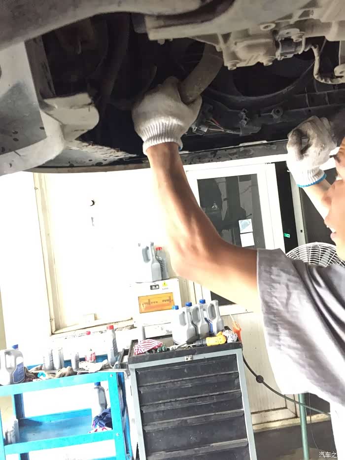 防冻液的管子在发动机下面,需要把护板拆掉。