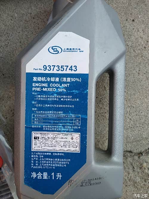 通用原厂的冷却/防冻液,因新车第二年就低于MIN线,就自己从4S店买了瓶添加,1升装30元