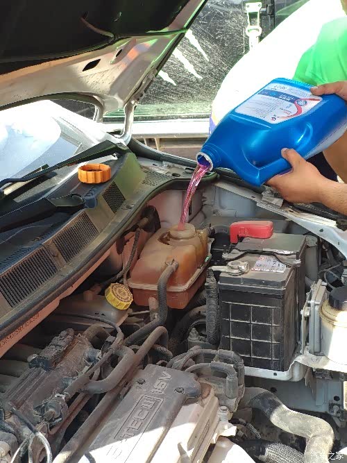 管子装回去(接口抹点胶)后,加入新的冷却/防冻液,用了5升多点
