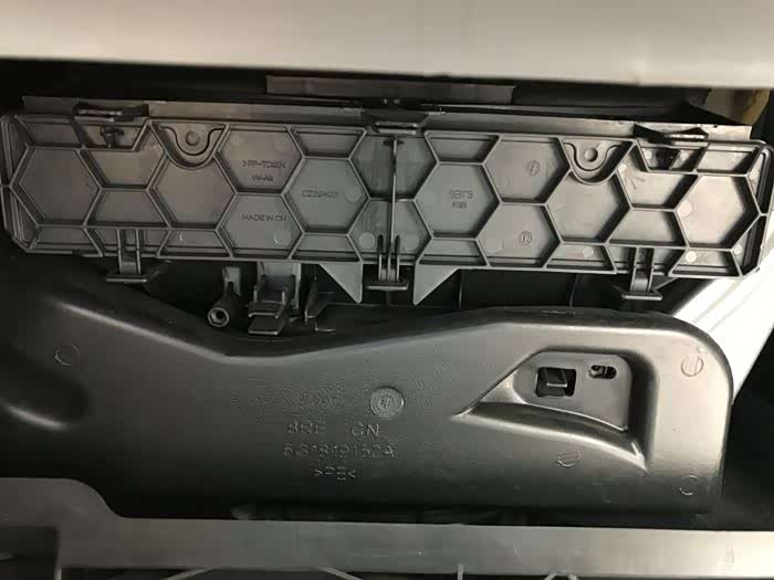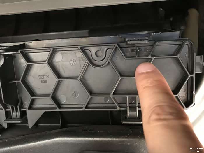 此位置打开方式:第一步就是半打开储物箱位置,双手拖住储物箱边沿,轻轻往上一提便可。