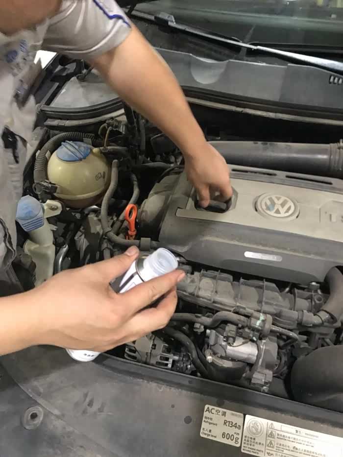 一汽大众原车机油道清洗剂,加入之后启动怠速运转5分钟 对油到有很好的清洁作用。