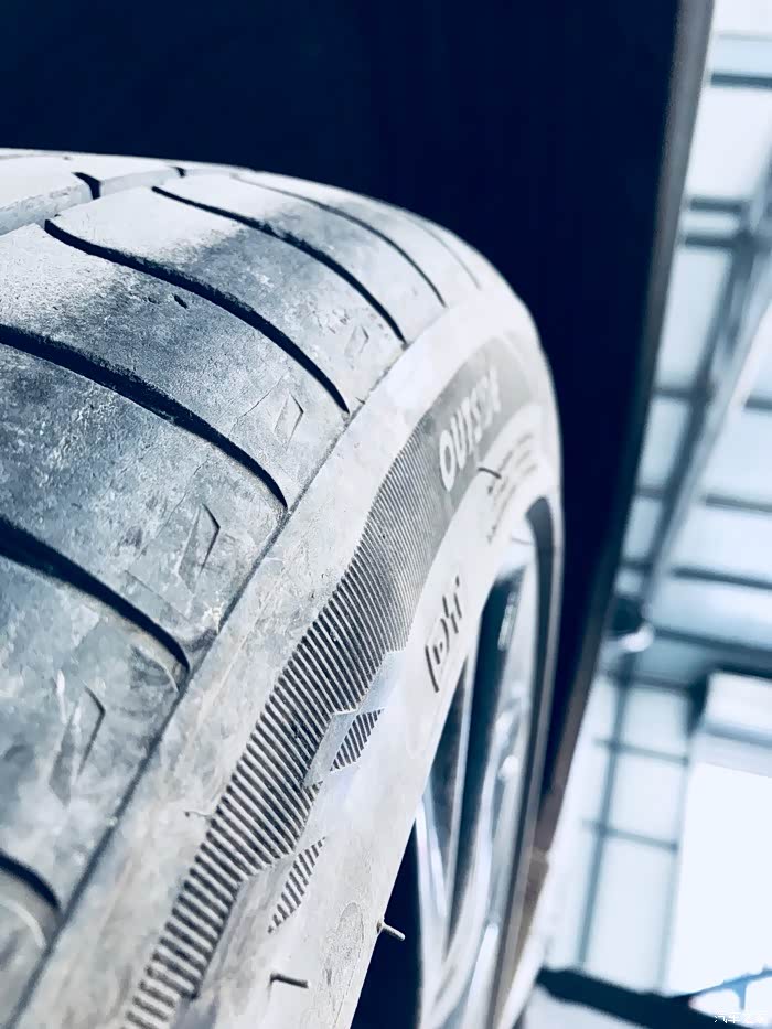 ,实际真看不出来,照的很夸张,但是我建议换掉,高速跑还是很危险。
