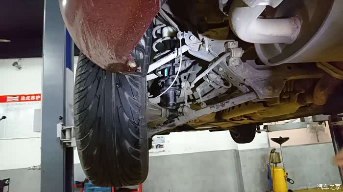 心得:换右后侧避震柱会容易些,准备好棘轮扳手(扁平的那种),漏油避震已经不行了,无法吸收震动,会对车身增大冲击,必须更换。