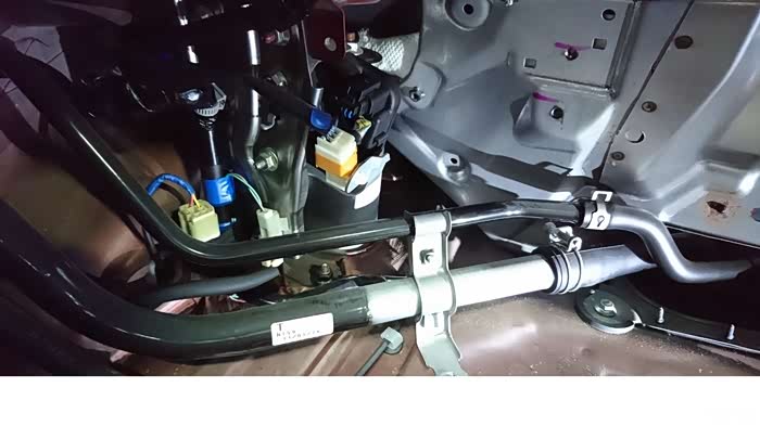 4 拆上册两个避震柱固定螺丝,有油管和车身阻挡空间狭小,比较困难
