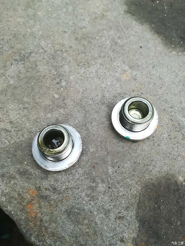 脏的是放油螺栓,里面不少类似油泥的玩意。干净的是加油螺栓。