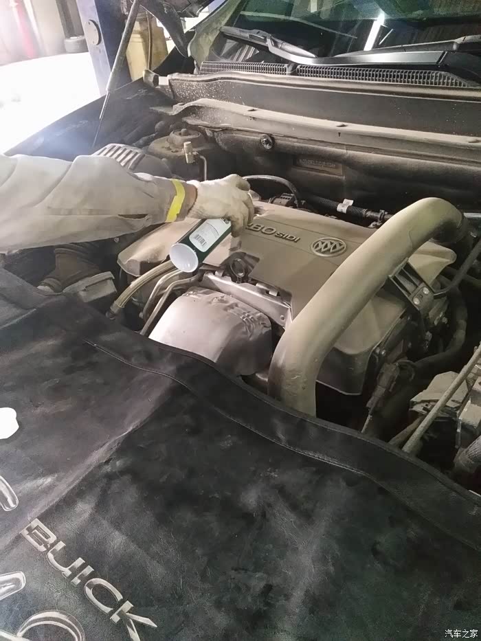 从机油家加注口进行添加启动车子,让发动机怠速运行10分钟左右。