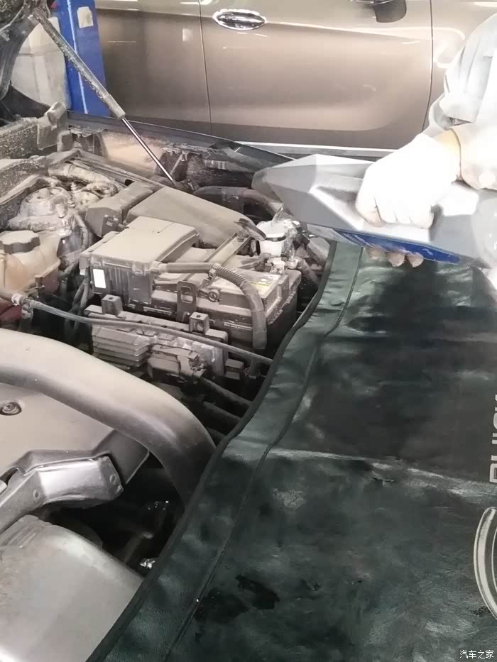 清洗发动机舱,因为平常跑的路灰尘特别大,所以机舱里面布满了灰尘,小威平常还是挺辛苦的。