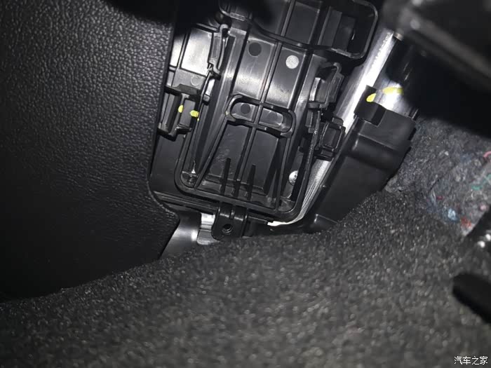 取空调滤芯会比较碍手,联系把保险拔掉再取,摁住白色这个扣子中间的黑点,把白色扣子往上推就可以把保险取下来了