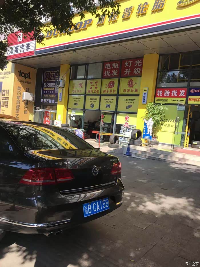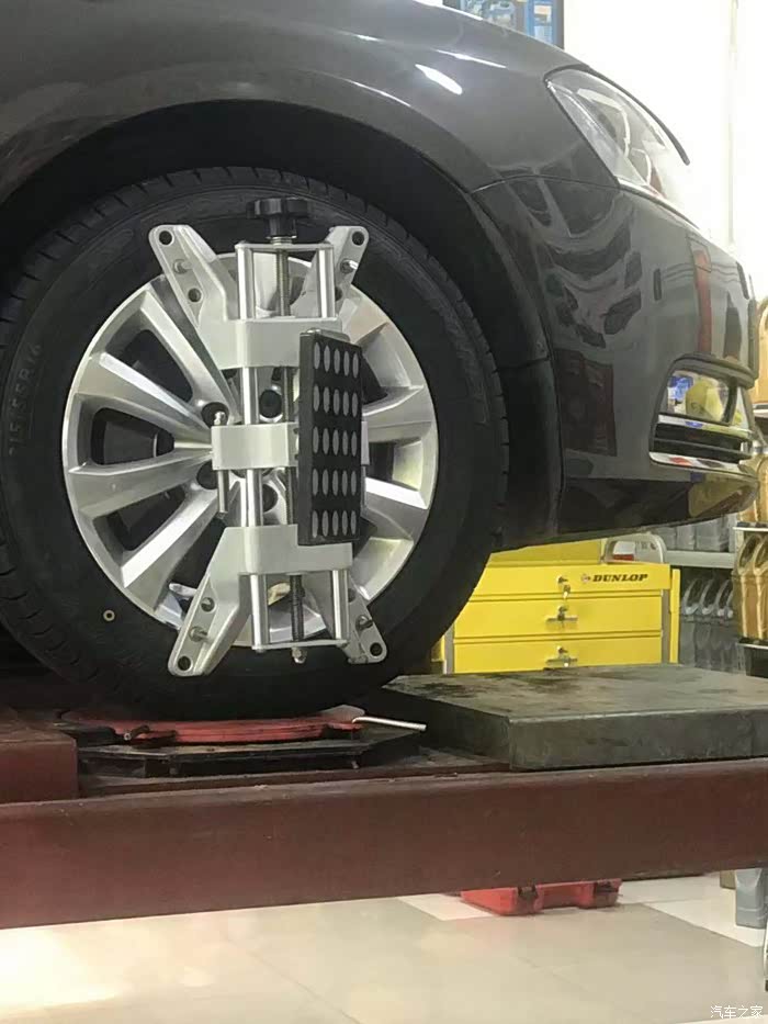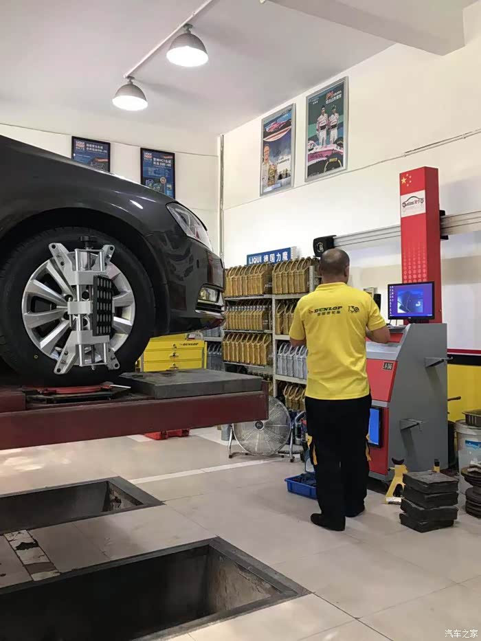 前几年数万公里的自驾游,后悬出现了移位,后胎呈内八字略微有点吃胎,不影响安全,本来胎是可以不用换的,但为了做个四轮定位,还是一换为安。对了,给车友一个参考,四条原厂胎(邓禄普)和四轮定位的费用一共2280元。正常在市区行驶,不常走烂路,建议每两年做一次四轮定位,延长轮胎寿命。长走烂路的话,建议每年一次四轮定位。