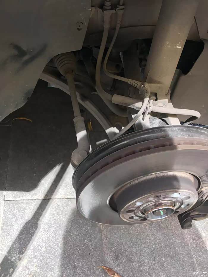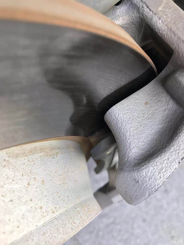 检查刹车盘及刹车片厚度,跑了82000公里,制动磨损的不多。这个和驾驶习惯有关,我一般很少紧急制动,多用发动机控制制动。