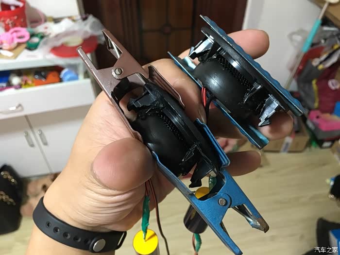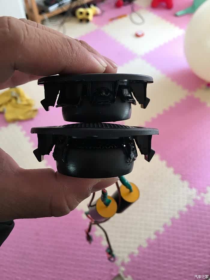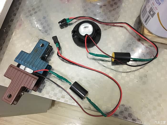 第二天中午,午深人静的时候。。。喇叭拿到车上,试了试。线头没有我想像的好插,但是好在没影响通电。俩喇叭都响了。