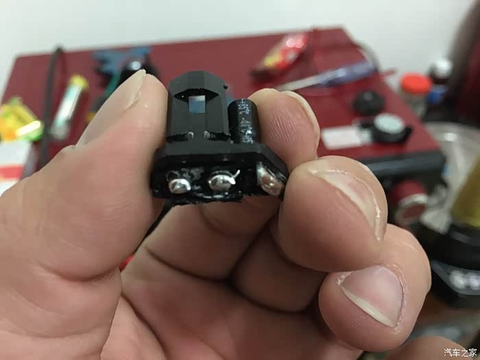 把喇叭线焊上。此处出了点乱子。能把焊锡熔化的温度让塑料接头也软化了~内部插针有移位,冷却了之后又调整了一下~