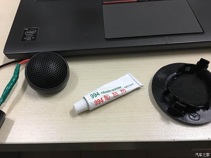 喇叭外圈也涂上助粘剂~然后对准了喇叭口,攮进去!!!一定要对准,因为实在是太粘了,调整较难。