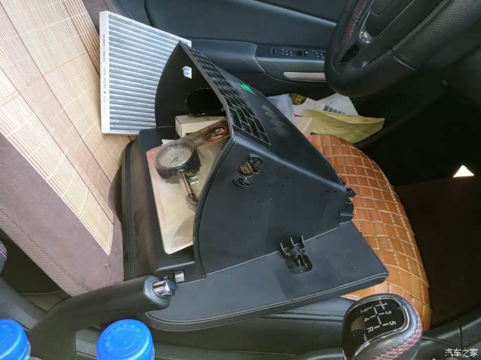 拆掉的手套箱,胎压计也在,东西不少,啊哈