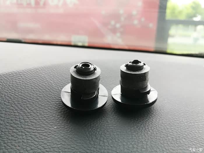 拆掉的两个手套箱塑料螺丝。
