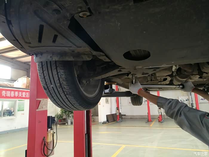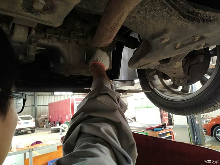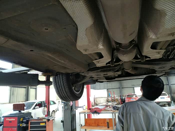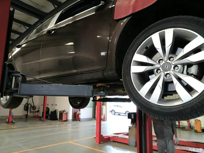 打着车,车子被升起来,,再进一步检查