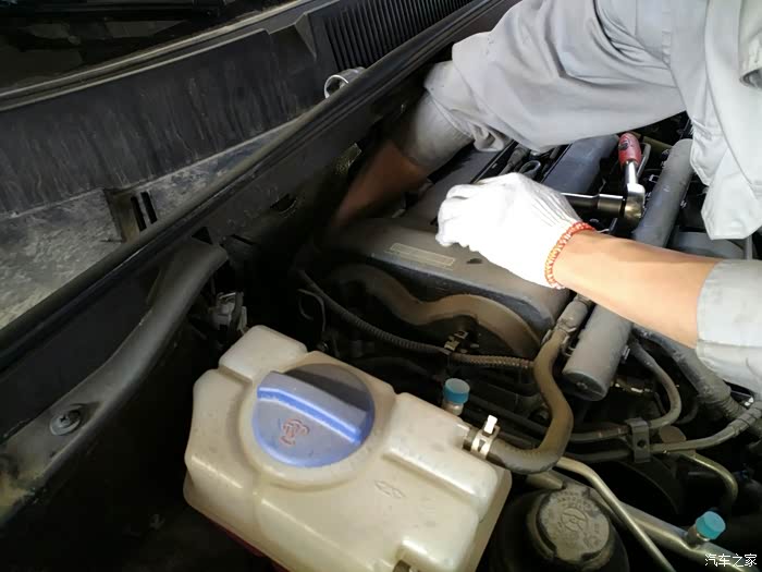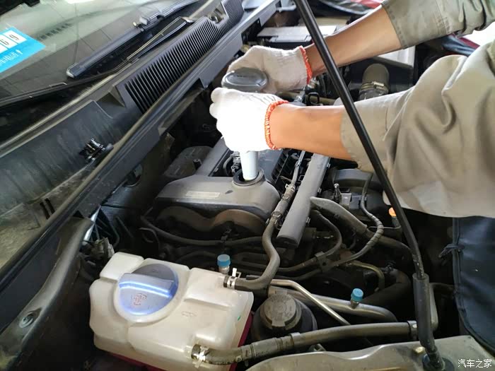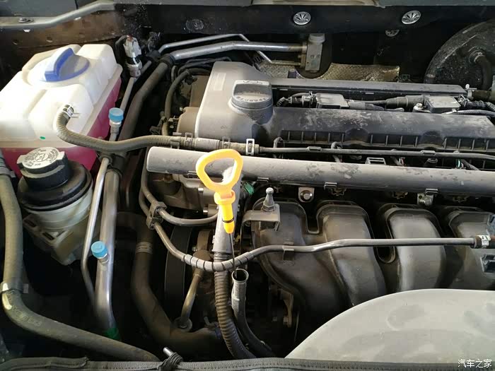 经过漫长的等待,把发动机熄火,开始放油,放油之前先把油尺拔出一点,这样为了放油不喘气