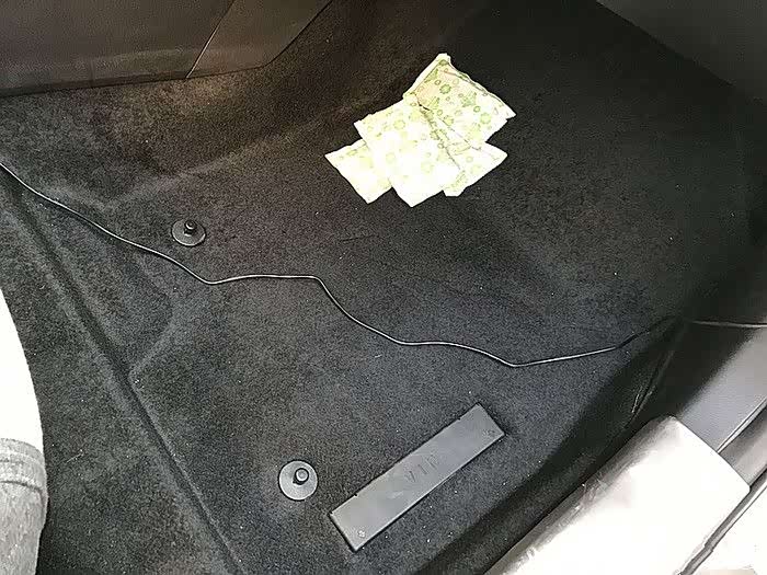 好了,首先先把原来的脚垫拿下来,漏出了车子本来的地板,后排很少坐人,都是媳妇抱着孩子坐坐,所以不脏,拿下来也不需要清理。
