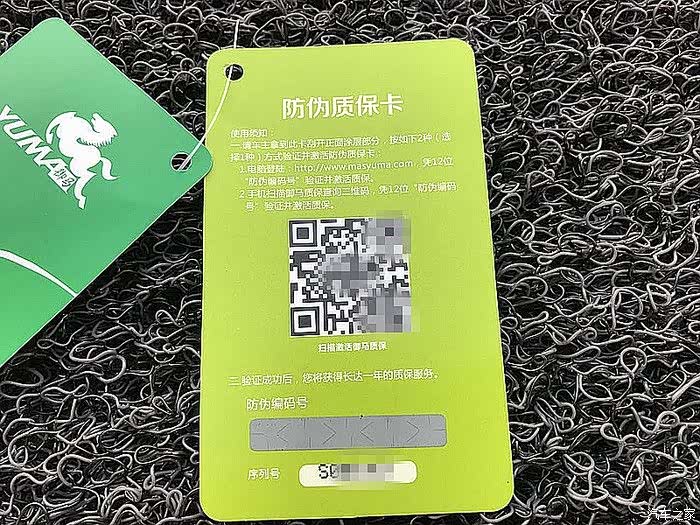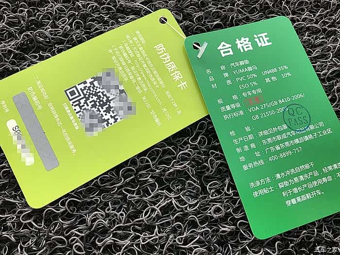 防伪质保卡,每一套脚垫都对应一个编码,可以在官方查询真伪信息。
