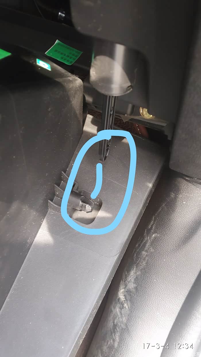 去掉阻尼连接之后,向靠近身体一侧平拉就可以取下手套箱。记得将螺帽放在里面,小心丢失。